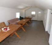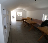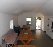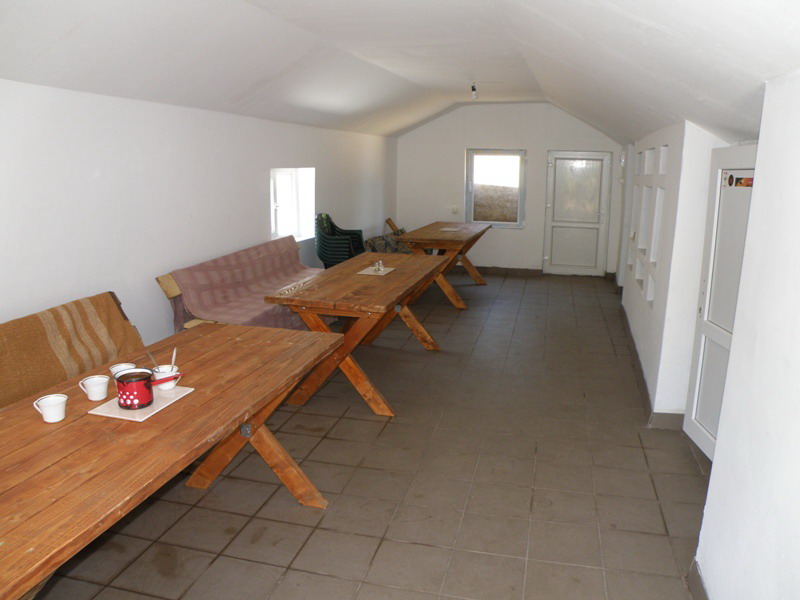 Dotari: Sala de mese, bucatarie, incalzire pe lemne la soba metalica, WC in afara cabanei