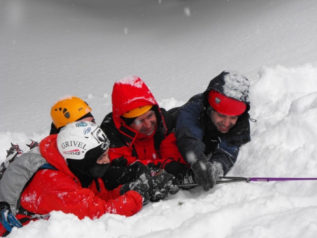 Exista si o tehnica de autosalvare a celui surprins de avalansa. El trebuie sa tina cat poate mainile indepartate de corp si, cand este cuprins de zapada, sa tina mereu fata in sus si sa "inoate" continuu in zapada exact ca in stilul bras; astfel se mentine deasupra zapezii. Daca a fost acoperit de zapada, omul va trebui sa-si determine pozitia, deoarece in rostogolire este posibil sa ajunga cu capul in jos. Pozitia se stabileste aruncand un obiect - o moneda, o manusa, ocelari sau pur si simpu scuipand; gravitatia ne va arata incotro va cadea obiectul si asa cel ce a supravietuit va sti in ce directie sa sape cu mainile, sa se miste ca sa iasa de sub zapada. Desigur, autosalvarea este posibila cand cineva este surprins sub straturi putin groase de zapada; cand ele sunt mari presiunea ce apasa peste cel prins este uriasa. In asemenea cazuri, deci cand nu se poate elibera singur, "prizonierul" trebuie sa-si faca in jurul fetei, imediat, o "punga" de aer, indepartand cat mai mult posibil zapada din dreptul nasului si a gurii; este cea mai buna metoda de supravietuire. Aceasta "punga de aer" trebuie mereu largita si "sparta" caci din cauza respiratiei si a caldurii corpului se topeste si formeaza o pelicula de gheata ce nu mai lasa aerul sa patrunda inauntru.