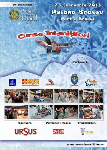 Iubitorii sporturilor de iarna si distractiei sunt asteptati sambata, 23 februarie 2013, pe partia Bradul din Poiana Brasov, sa ia parte la cea de-a 6-a editie de iarna a Cursei Trasnitilor, organizata, ca de obicei, de catre Rotary Club Brasov Citadel, in colaborare cu Agentia RedCarpet.