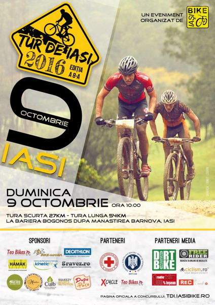 Tur de Iasi, aflat la a 8-a desfasurare, se va derula pe 9 octombrie 2016, in Padurea Barnova, incepand cu ora 10:00, si este organizat de catre Clubul de Ciclism si Ecologie IasiBike.